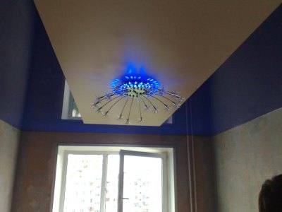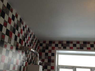 В случае установки натяжного потолка в помещениях с обоями под покраску или в гипсокартонные конструкции окончательный слой краски наносится после установки потолка.