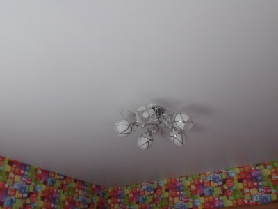 1. Если вы выбрали глянцевое или натяжное полотно, то хорошим решением для этой комнаты станет люстра с множеством мелких ламп (зрительно увеличится количество источников света, путем отражения их от пленки).